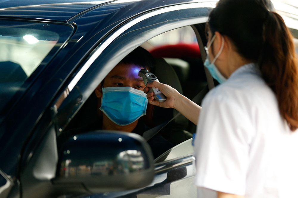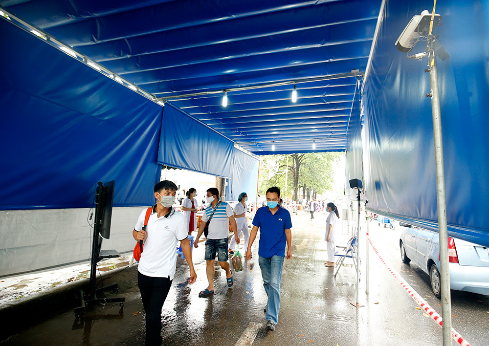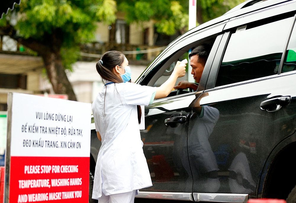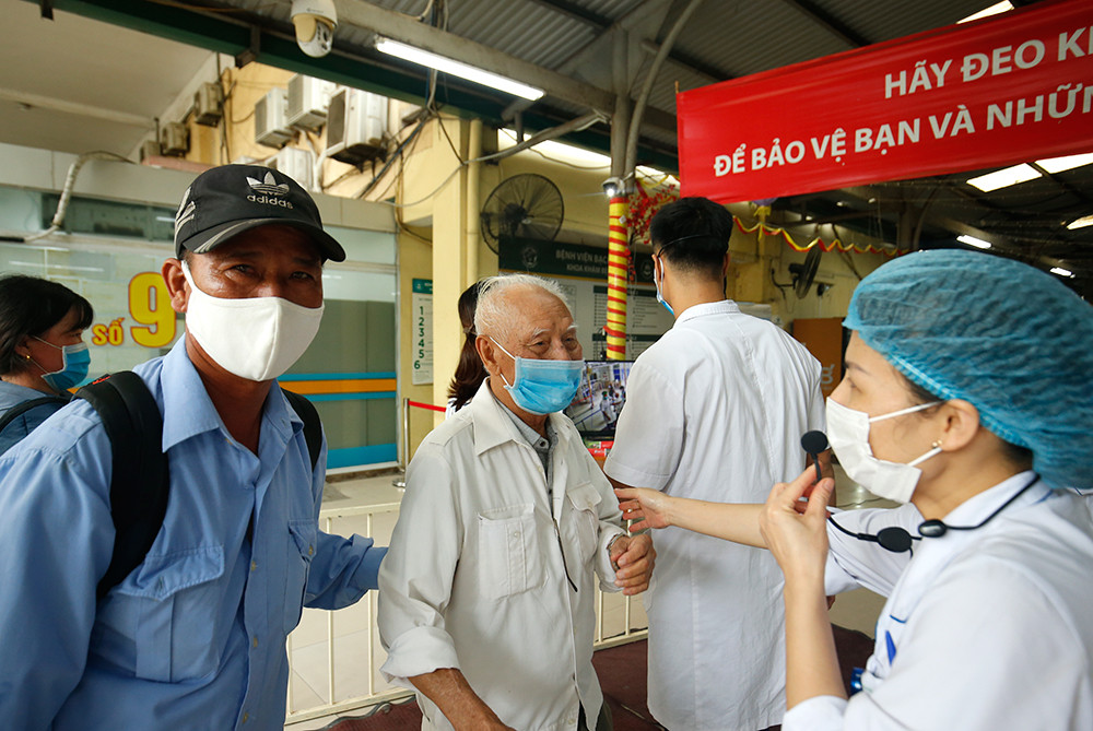 Tất cả các bệnh nhân và người nhà khi vào trong khuôn viên bệnh viện đều được tầm soát nhiệt