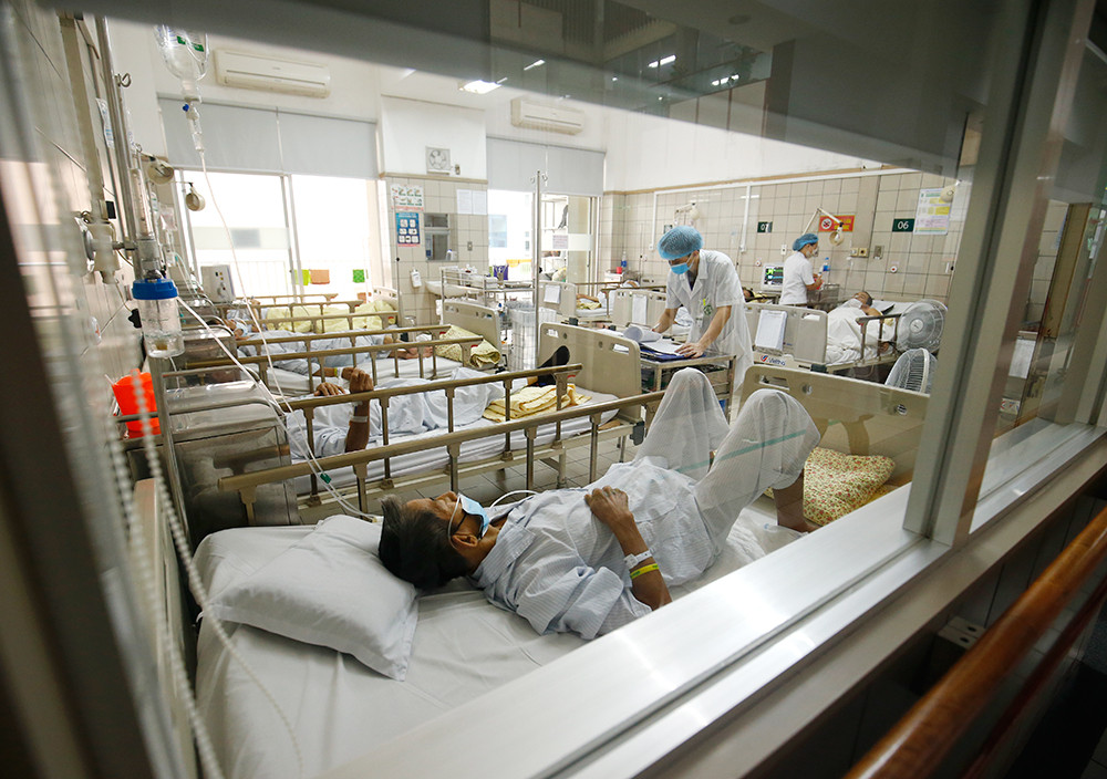 Phòng điều trị bệnh nhân nặng được các y bác sĩ chăm sóc từng bệnh nhân và hạn chế người nhà chăm sóc .
