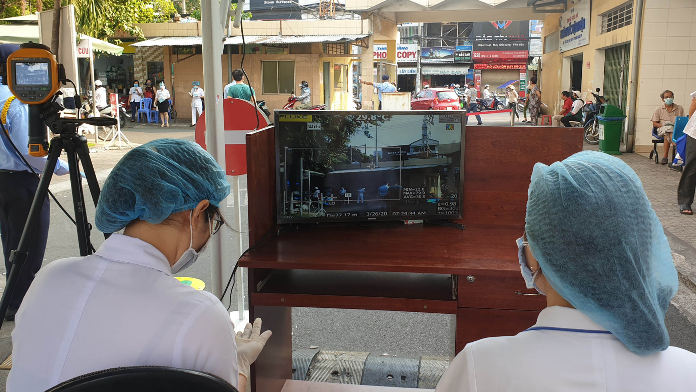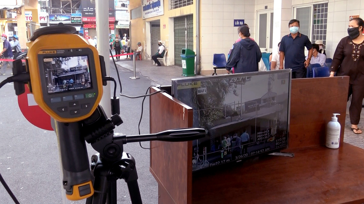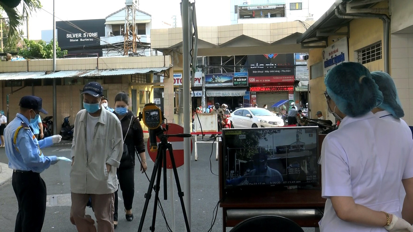 Ngày 26/3, bệnh viện Thống Nhất, TPHCM cho biết, lắp đặt và đưa vào sử dụng máy kiểm tra thân nhiệt tất cả người vào bệnh viện để ngăn ngừa COVID-19 lây lan trong bệnh viện.