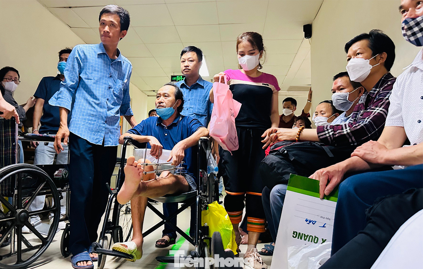 | Dọc các hành lang, người nhà, người bệnh đứng ngồi thấp thỏm chờ đến lượt. Thi thoảng nhân viên y tế đọc tên người vào khám, cả hành lang lại xôn xao. |