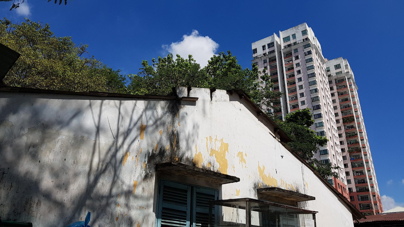 | Những kiến trúc cổ trong khuôn viên bệnh viện đang dần xuống cấp theo thời gian bên cạnh các tòa nhà cao tầng mọc như nấm xung quanh bệnh viện |