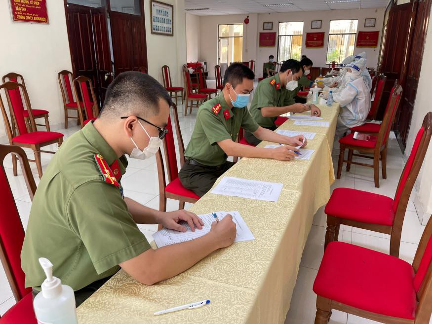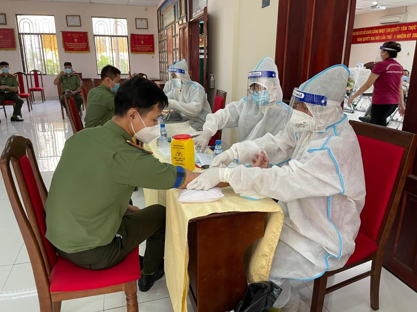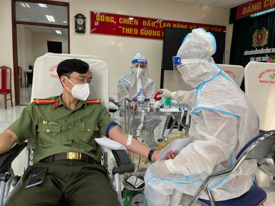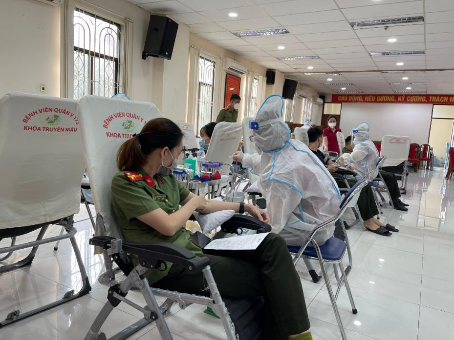 Một số hình ảnh các cán bộ, nhân viên Công an Cửa khẩu cảng HKQT Tân Sơn Nhất tham gia hiến máu: