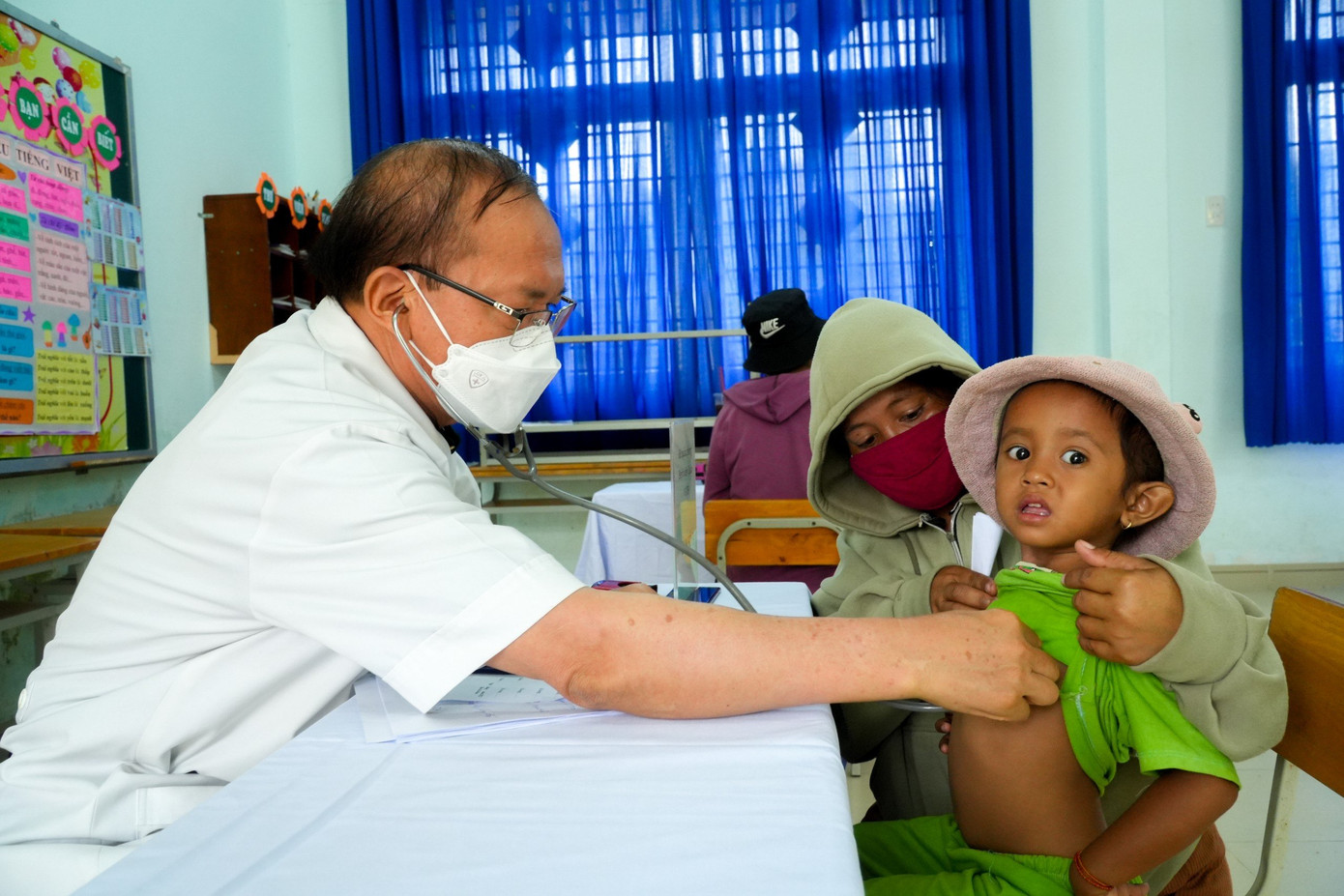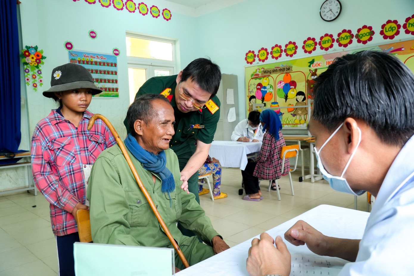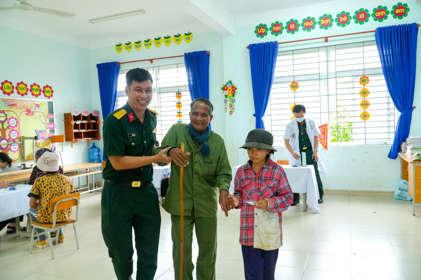 | Ngoài khám bệnh, người dân còn được cấp thuốc miễn phí tại chương trình. |