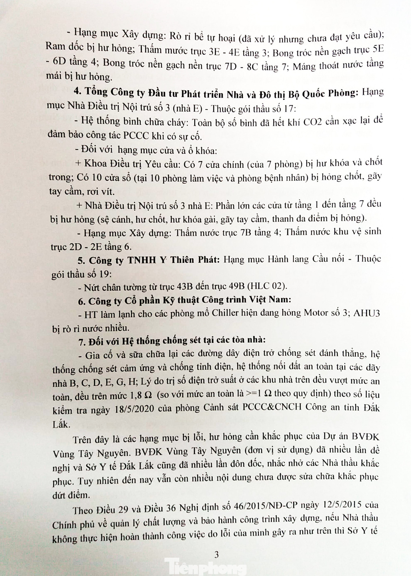 Ngày 27/5/2020, ông Nay Phila Giám đốc sở Y tế ký công văn số 1873 gửi BV Vùng và 6 nhà thầu, yêu cầu đẩy nhanh tiến độ sửa chữa, khắc phục các tồn tại của Dự án BV Vùng. Công văn liệt kê đầy lỗi xây dựng và cung ứng thiết bị.