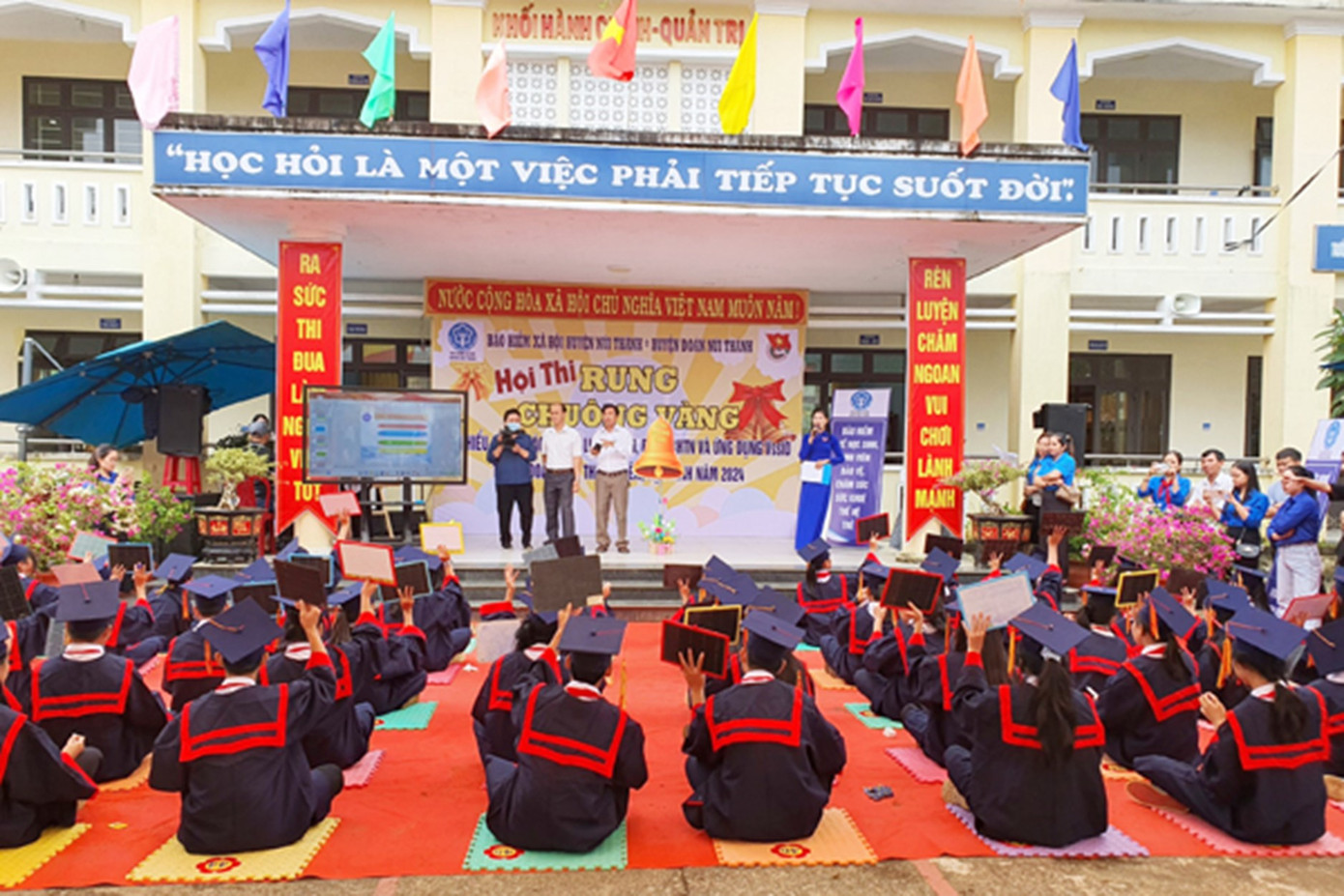 Chương trình cũng huy động sự tham gia hợp tác, chia sẻ giữa các bên liên quan, như phụ huynh học sinh, cơ sở giáo dục, cơ sở y tế là những đơn vị đang tham gia thực hiện chính sách BHYT, có trách nhiệm phối hợp trong triển khai thực hiện, phấn đấu mục tiêu 100% học sinh tham gia BHYT trên địa bàn BHXH Quảng Nam triển khai tuyên truyền chính sách pháp luật BHYT thông qua hình thức Hội thi “ Rung chuông vàng”.