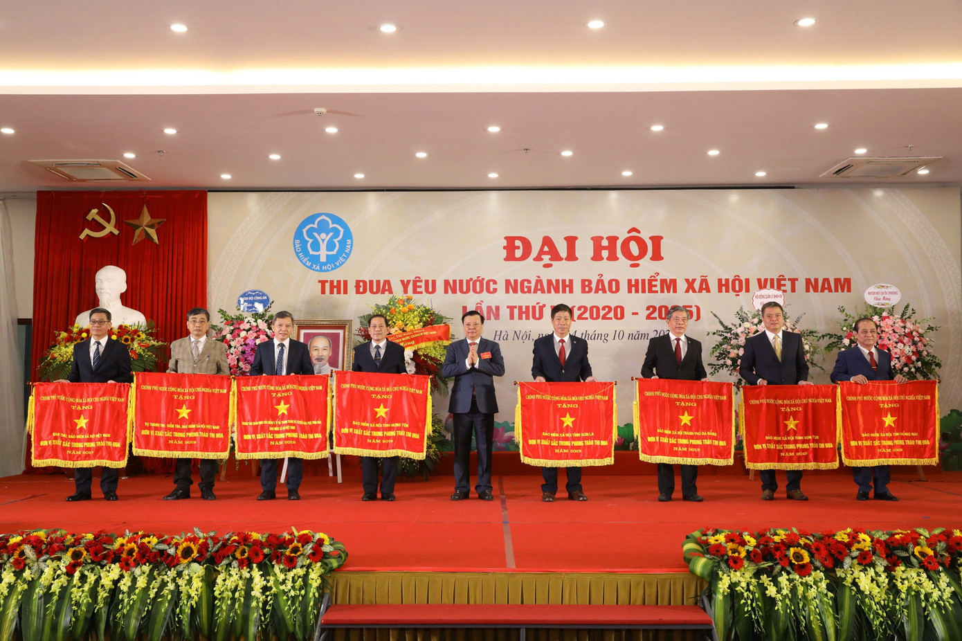 Thừa ủy quyền của Thủ tướng Chính phủ, Ủy viên Ban Chấp hành Trung ương Đảng, Bộ trưởng Bộ Tài chính, Chủ tịch Hội đồng quản lý BHXH Việt Nam Đinh Tiến Dũng trao tặng Cờ thi đua của Chính phủ cho 8 tập thể; Thượng tướng Nguyễn Văn Thành, Ủy viên Trung ương Đảng, Thứ trưởng Bộ Công an trao Bằng khen của Thủ tướng Chính phủ cho 7 tập thể;