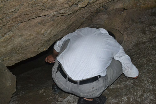 Để tìm hiểu thực hư về hang chứa đồ cổ và sọ người này, chúng tôi đã nhờ già làng Thưởng, dẫn chúng tôi vào hang. Đường lên đỉnh núi cao hơn 100m, dốc thoai thoải, mất khá nhiều thời gian chúng tôi mới đặt chân đến cửa hang.