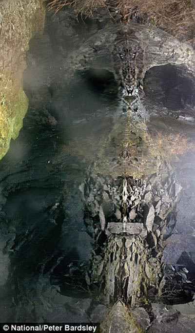 Một hình ảnh khác của hồ này đã được nhiếp ảnh gia Bardsley phát hiện ra. Toàn cảnh của hồ khiến ông liên tưởng tới mô hình của một chiếc hộp sọ và ông đã chụp lại. Sự đáng sợ của hình ảnh này chính là do những hòn đá được sử dụng ngày trước khi in bóng xuống mặt hồ đã tạo nên một sự trùng hợp ngẫu nhiên. Nó khiến người ta liên tưởng tới một chiếc hộp sọ khổng lồ, đáng sợ, có hai con mắt trũng, mũi và những chiếc răng nanh khiếp đảm.