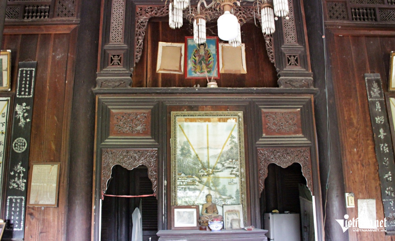 | Ban thờ cụ Nguyễn Văn Giác, người xây dựng ngôi nhà cổ có kiến trúc đẹp, độc đáo. Ảnh: Hà Nguyễn |
