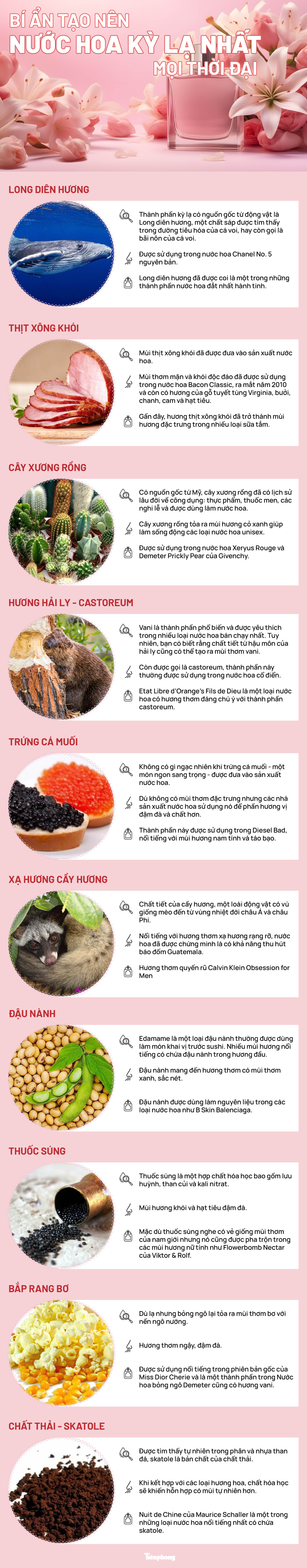 Nguyên liệu và thành phần nước hoa được làm từ hỗn hợp các thành phần tự nhiên như nhựa, lá, hoa và gia vị cũng như xạ hương động vật…
