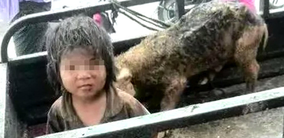 Nơi ở của bé là một chuồng lợn trống hoác, ngập tràn rác rưởi và bụi bẩn. Trên cơ thể bé có hững vết bầm và xước. Cậu bé được cho là đã bị chính cha mẹ của mình ruồng rẫy và không chăm sóc thường xuyên.