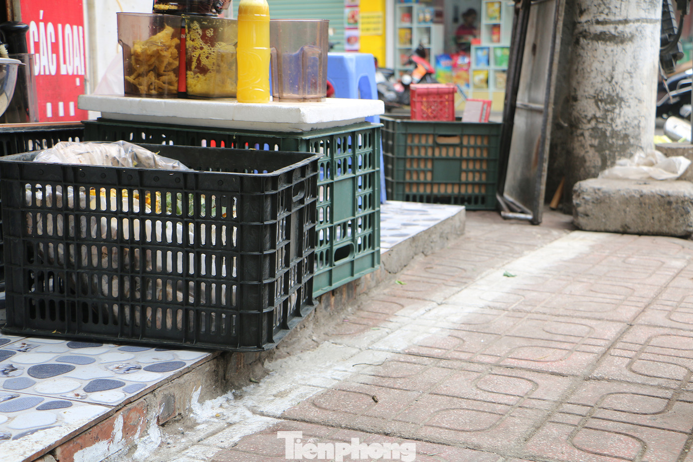 | “Vạch kẻ huyền thoại" vẫn “chịu thua” sân rửa bát. Một cơ sở kinh doanh chiếm dụng không gian chung, xây gạch bo, đổ xi măng phủ kín lớp gạch lát vỉa hè nguyên bản. |