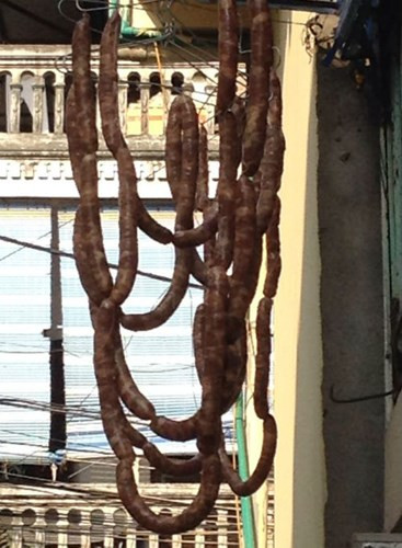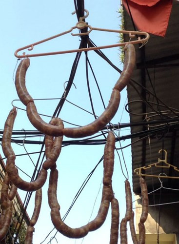 Người quen mắt không sao nhưng nhiều người đi qua con ngõ này không khỏi giật mình khi thấy từng khúc lạp xưởng treo lủng lẳng trên đầu. Người dân trong khu vực cho biết, chủ nhân của những chiếc lạp xưởng này có truyền thống từ Lạng Sơn. Mỗi đợt làm sẽ chỉ phơi từ 4 đến 5 ngày và chỉ phơi khi trời hanh.