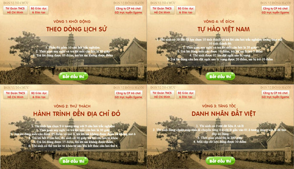 Với phần thi trực tuyến cá nhân, các “nhà sử học trẻ” sẽ phải trải qua 4 phần: Theo dòng lịch sử; Hành trình đến địa chỉ đỏ; Danh nhân đất Việt và Tự hào Việt Nam. Mỗi phần thi sẽ là một sắc màu khiến thí sinh như được chu du trên cỗ máy thời gian tìm về với cội nguồn quá khứ. Mỗi tuần, người chơi sẽ được thử sức tối đa 2 lần thi để chọn lấy kết quả cao nhất.