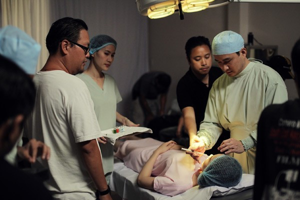Cảnh quay được thực hiện với sự giám sát, chỉ dẫn của các bác sĩ, y tá chuyên nghiệp.