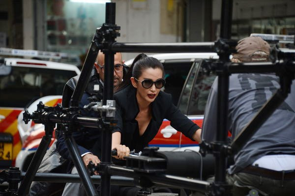 Lý Băng Băng trong một cảnh rượt đuổi bằng xe mô tô khi tham gia bộ phim bom tấn Hollywood Transformers 4. Tuy nhiên, cô chỉ xuất hiện ở những góc máy cận, còn quá trình rượt đuổi được một cascadeur nam đóng thế.