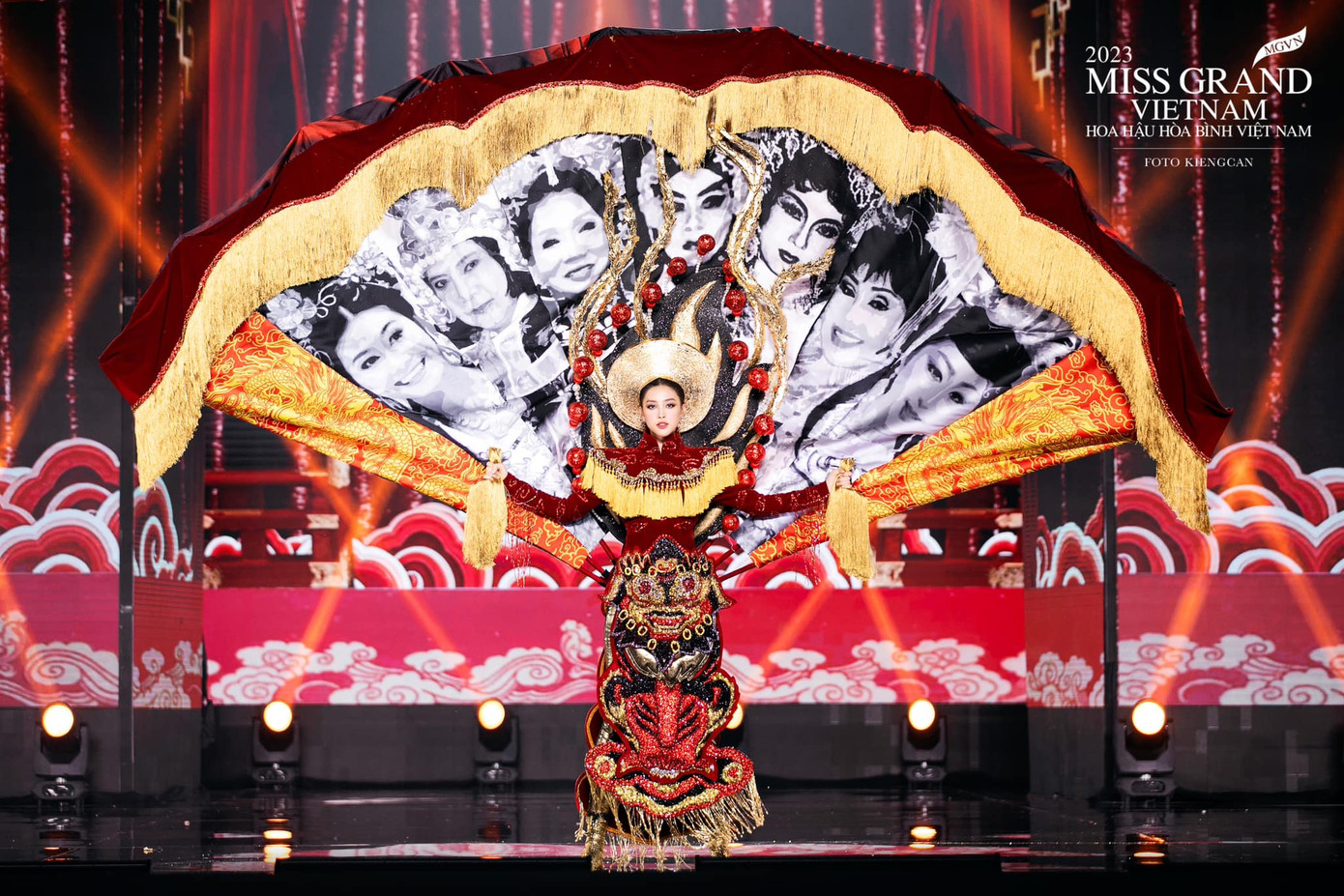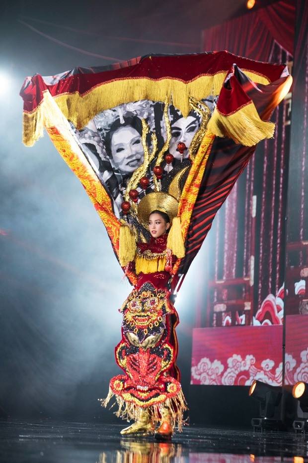 Hoa hậu Tiểu Vy được giao trọng trách khoác lên mình một trong những thiết kế lớn nhất, nặng nhất của chương trình. Trang phục của cô mang tên Kép Thị lấy cảm hứng từ nữ tướng giả trai Nguyễn Thị Bành trong lịch sử Việt Nam. Điểm nhấn của thiết kế này là chiếc quạt khổng lồ sau lưng với hình in các nghệ sĩ tên tuổi ở các môn nghệ thuật truyền thống.