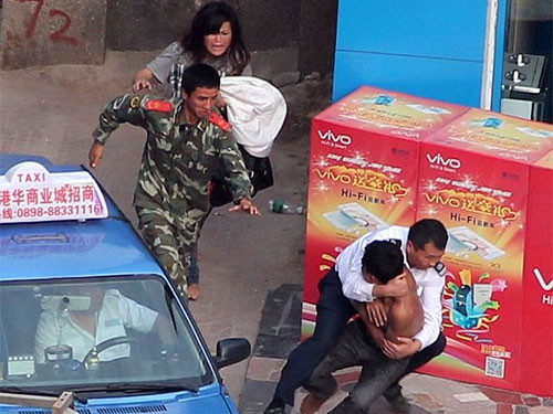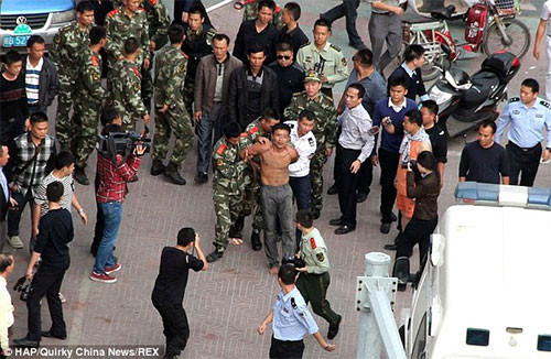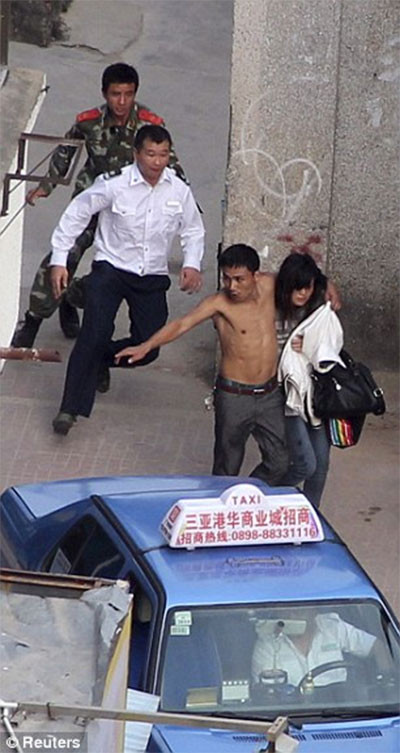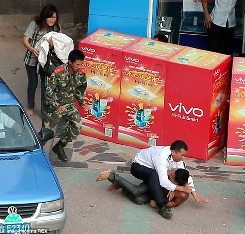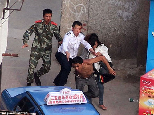 Vụ việc xảy ra ở Trung Quốc hồi đầu tuần khiến hàng trăm người hiếu kỳ kéo tới xem và cảnh sát phải rất vất vả mới khống chế được chàng trai khó hiểu này.