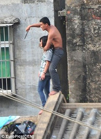 Sau khi bị cha mẹ cô gái phản đối hôn nhân, Lin bất ngờ bắt cóc người yêu rồi đưa lên nóc nhà. Cô gái không dám chống cự vì bị Lin kề dao vào cổ.