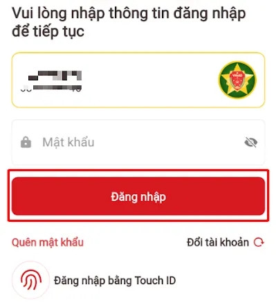 Bước 1: Mở ứng dụng VNeID và đăng nhập tài khoản.