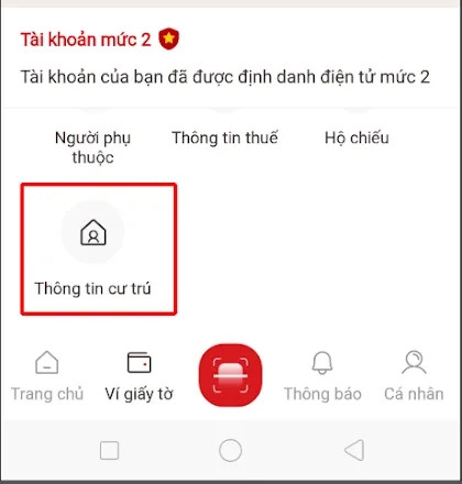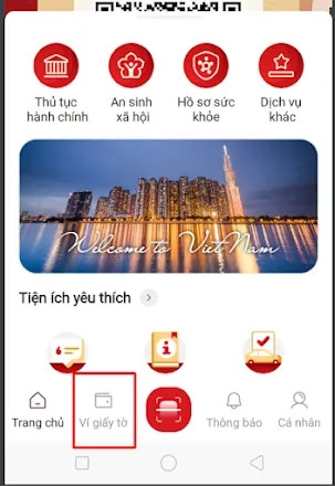 Bước 2: Tại màn hình chính sau khi đăng nhập thành công, chọn mục Ví giấy tờ.