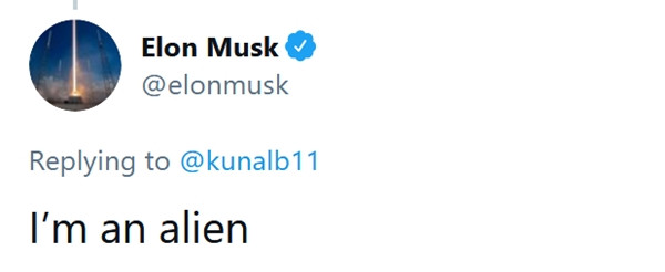 Shah đã rất bất ngờ khi Elon nhanh chóng trả lời, bằng một câu ngắn và hài đúng kiểu Elon: “Tôi là người ngoài Trái Đất đấy”.