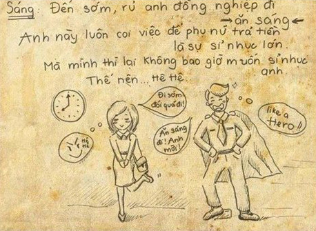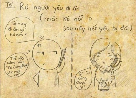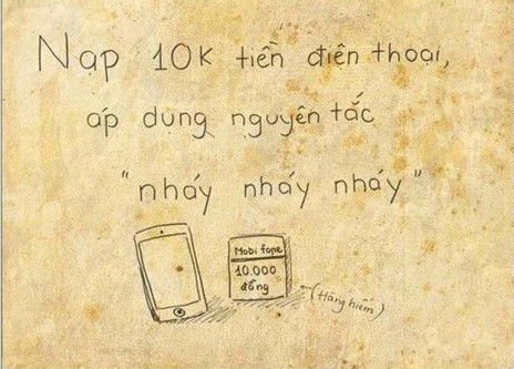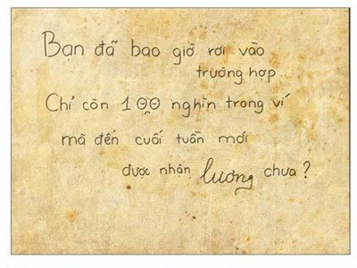 Đến sát ngày nhận lương mà chỉ còn vài chục nghìn trong túi, cô nàng bèn giở hết mọi mưu mẹo như ăn cơm sinh viên 15k (và tích cực xin thêm cơm, thịt), ăn xôi 10k, ăn bánh mỳ không và uống nước… cho nở ra. Cuối cùng, chiều thứ 6, với 10k cuối cùng mua xôi, cô nàng hồi hộp chờ đợi “tin nhắn thần thánh” báo tới…