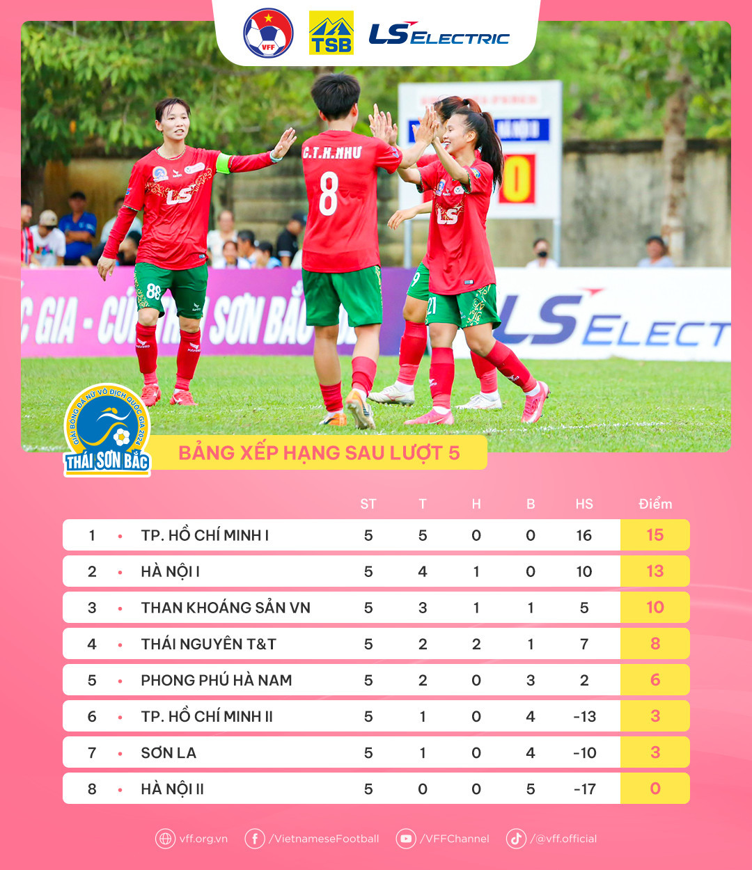 Ở trận đấu cuối cùng của lượt thứ 5, Than KSVN thi đấu chưa thực sự ấn tượng nhưng vẫn dồn ép TP.HCM II. Phút thứ 6, Trúc Hương tận dụng cơ hội ghi bàn thắng mở tỉ số trận đấu cho đội bóng vùng mỏ. Sang hiệp 2, Hà Thị Nhài lập công ở phút 79 ấn định chiến thắng 2-0 cho Than KSVN.