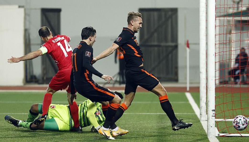 Trong khi đó, Hà Lan cũng phô diễn sức mạnh trước đội bóng Gibraltar hạng 195 thế giới. Trước đối thủ hoàn toàn không có sức phản kháng, "Cơn lốc màu da cam" phải đợi đến phút 41 mới có bàn thắng do công của Berghuis. De Jong gia tăng cách biệt ở phút 55 trước khi Depay nâng tỉ số lên 3-0 ở phút 61.