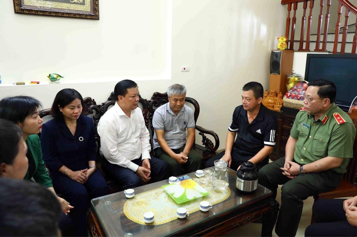 Bí Thư thành ủy Hà Nội Đinh Tiến Dũng cùng đại diện lãnh đạo thành phố Hà Nội đã đến nhà riêng thăm và động viên gia đình các đồng chí: Trung tá Đặng Anh Quân (sinh năm 1977; Đội trưởng Đội Cảnh sát phòng cháy, chữa cháy và cứu nạn, cứu hộ, Công an quận Cầu Giấy, trú tại số 3, ngách 61, ngõ 1002, đường Láng, Đống Đa); Trung úy Đỗ Đức Việt (sinh năm 1998; cán bộ Đội Cảnh sát phòng cháy, chữa cháy và cứu nạn, cứu hộ, Công an quận Cầu Giấy, trú tại số 16, ngõ 30, Văn La, Phú La, Hà Đông); Binh nhì Nguyễn Đình Phúc (sinh năm 2003; chiến sĩ nghĩa vụ Đội Cảnh sát phòng cháy, chữa cháy và cứu nạn, cứu hộ, Công an quận Cầu Giấy, trú tại 103B - C3 khu tập thể Nghĩa Tân, Cầu Giấy).