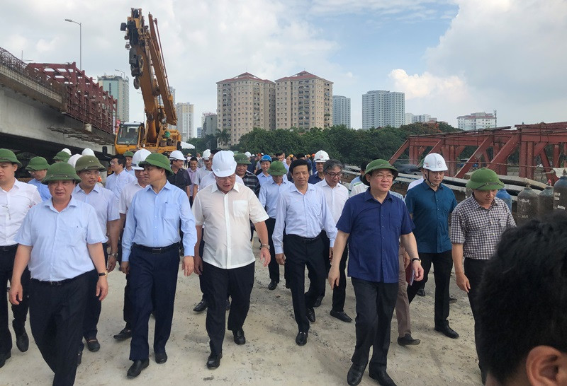 Với dự án cầu vượt tại nút giao Nguyễn Văn Huyên với đường Hoàng Quốc Việt, Bí thư Thành ủy Hà Nội Vương Đình Huệ yêu cầu, đảm bảo hoàn thành dự án vào dịp Quốc khánh 2/9 theo tiến độ.