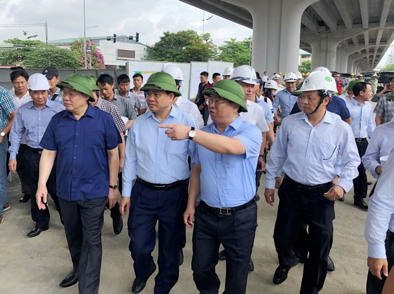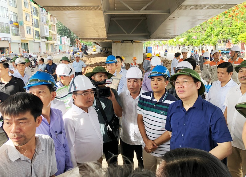 Tại tầng 2 đường trên cao Vành đai 2 đoạn Ngã Tư Sở - Ngã Tư Vọng, ông Huệ đề nghị nhà đầu tư là Tập đoàn Vingroup sớm hoàn thành, thông xe trước đoạn trên cao để giảm ùn tắc khu vực đường Trường Chinh.