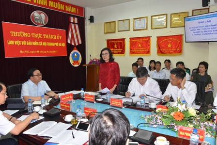 Tại buổi làm việc, đồng chí Nguyễn Đức Hòa, Phó Giám đốc Phụ trách BHXH Hà Nội đã báo cáo kết quả thực hiện nhiệm vụ 7 tháng đầu năm và nhiệm vụ trọng tâm 5 tháng cuối năm 2017. Theo đó, đến nay số người tham gia BHXH, BHYT trên địa bàn Thủ đô là 6.047.459 người (tăng 10,3% so với cùng kỳ năm trước). Tỷ lệ bao phủ BHYT trên địa bàn đạt 82,5%.