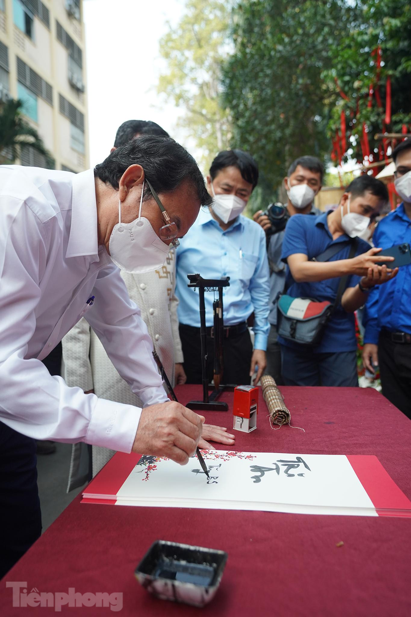 | Bí thư Nguyễn Văn Nên trao tận tay hai chữ "tri ân" cho bác sĩ Nguyễn Tri Thức, Giám đốc bệnh viện Chợ Rẫy. "Tết năm nay, thành phố thực hiện chủ đề là Tết tri ân, vì vậy bệnh viện Chợ Rẫy cần rà soát quan tâm chăm lo, tri ân cho các bộ phận của đơn vị. Cùng với đó, bệnh viện cần tiếp tục có những đổi mới, sáng tạo trong công tác chăm sóc sức khỏe cho nhân dân. Nhân dịp Tết Nguyên đán Nhâm Dần năm 2022, Bí thư Thành ủy Nguyễn Văn Nên chúc cán bộ, nhân viên y tế, công nhân viên, người lao động của bệnh viện Chợ Rẫy luôn mạnh khỏe, tiếp tục có thêm niềm tin, nghị lực để hoàn thành sứ mệnh của người thầy thuốc mà Đảng, Nhà nước nhân dân đã giao. |