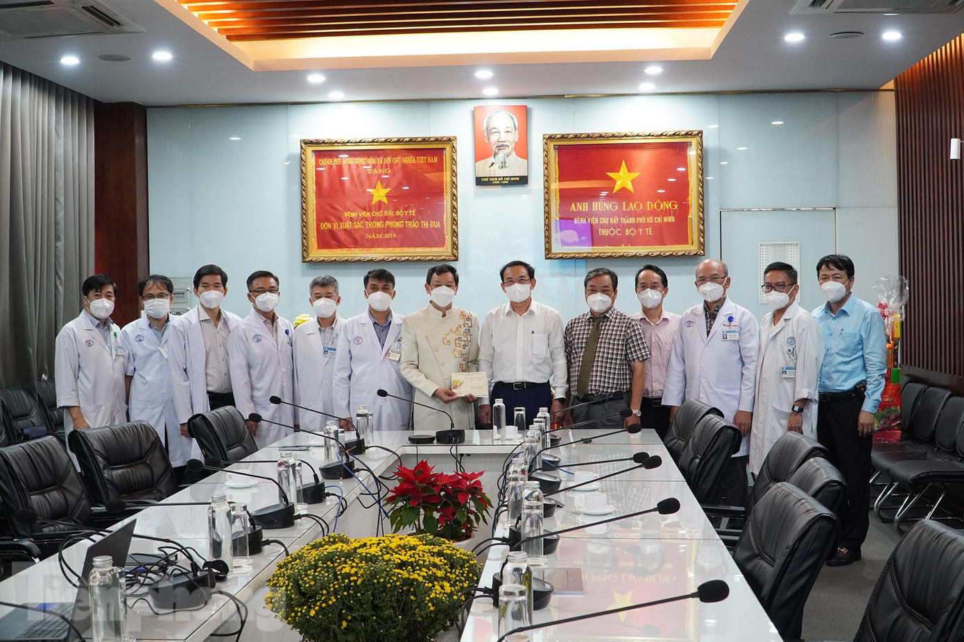 Ông gửi lời cảm ơn cán bộ, nhân viên y tế, công nhân viên của bệnh viện thời gian qua đã sát cánh cùng Đảng bộ, chính quyền và nhân dân TPHCM chiến đấu phòng chống dịch COVID-19.