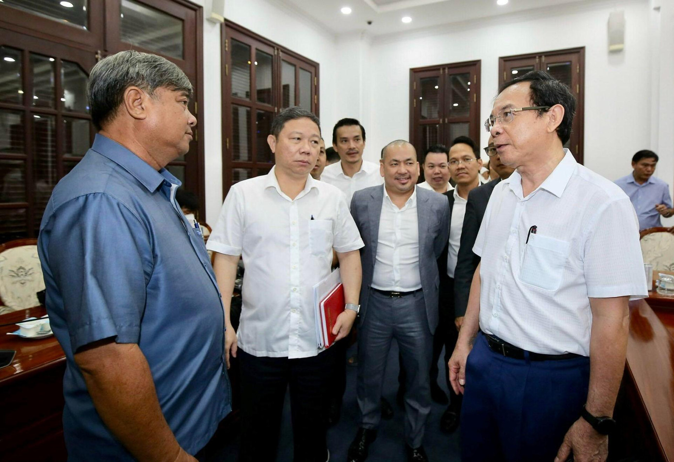 | Bí thư Thành ủy TPHCM Nguyễn Văn Nên trao đổi cùng lãnh đạo hai đội bóng và các cơ quan phụ trách bóng đá thành phố. |