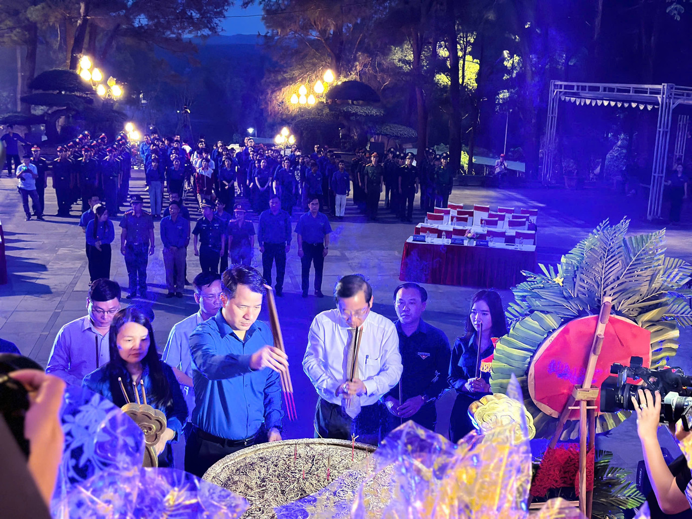 | Bí thư thứ nhất T.Ư Đoàn Bùi Quang Huy cùng các đại biểu dâng hương tưởng nhớ công ơn to lớn của các thế hệ cha anh. Ảnh: Văn Tiệp |