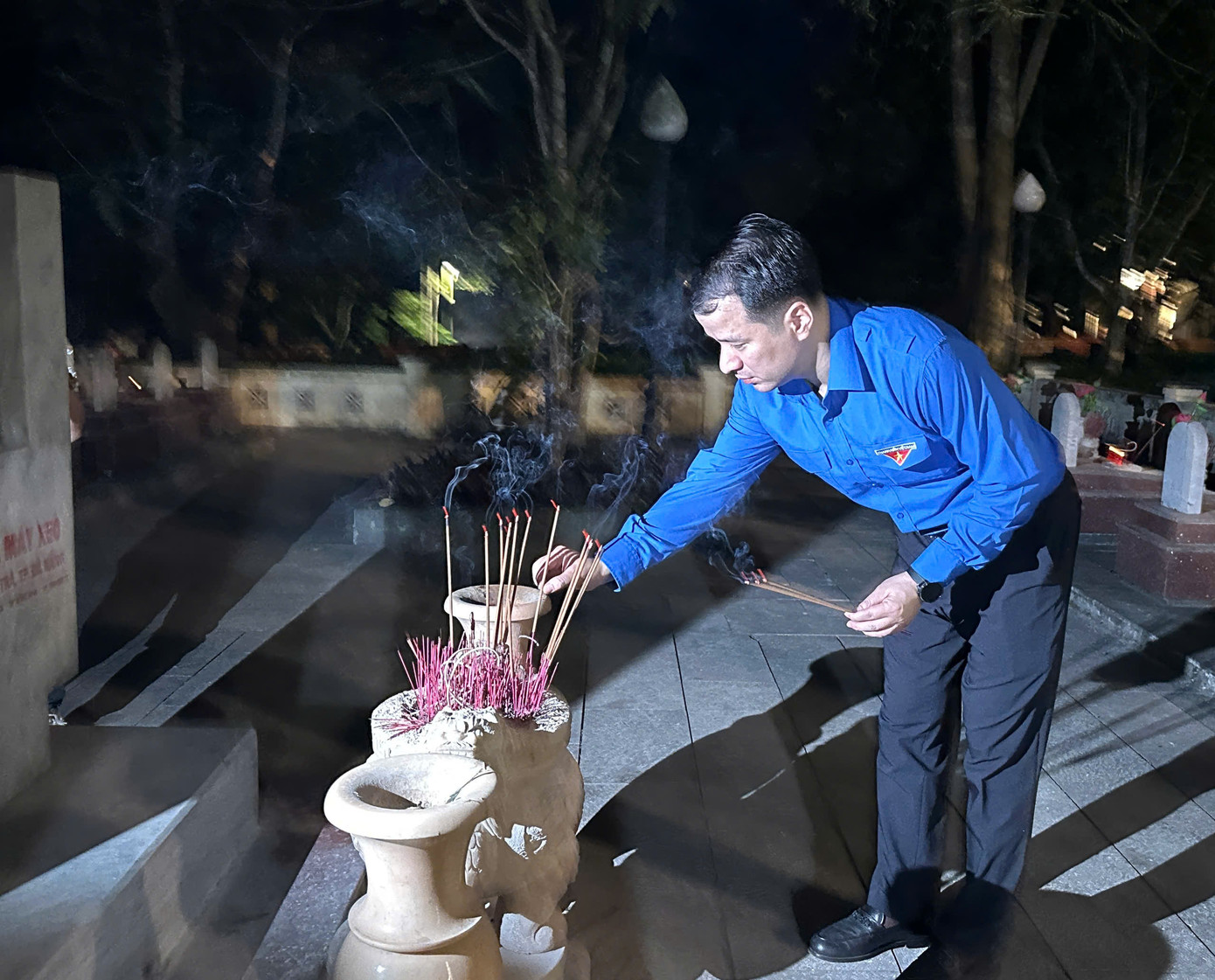 Anh Ngô Văn Cương - Bí thư Trung ương Đoàn, Chủ nhiệm Ủy ban Kiểm tra Trung ương Đoàn tham dự Lễ thắp nến tri ân tại điểm cầu Quảng Trị, tổ chức tại Nghĩa trang Liệt sĩ Quốc gia Trường Sơn.