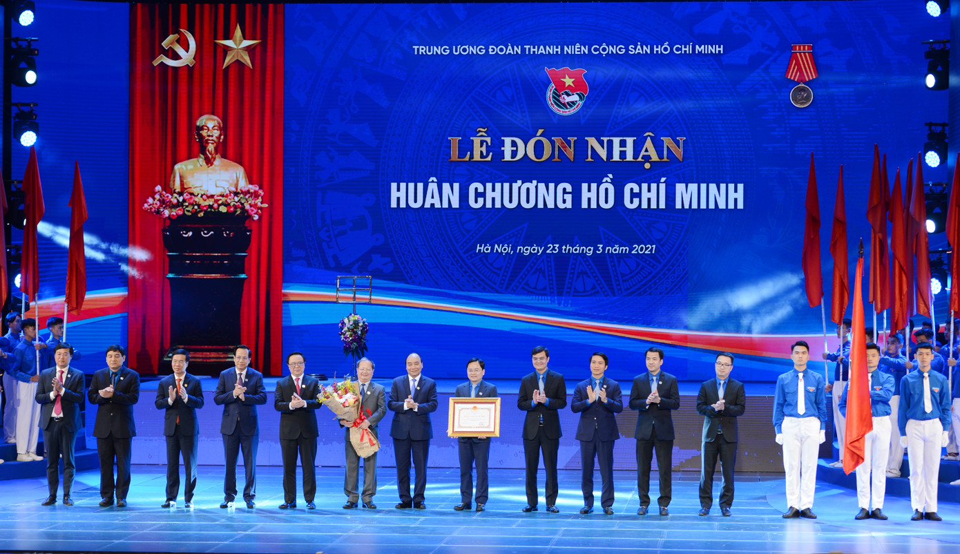Anh Nguyễn Anh Tuấn, Uỷ viên T.Ư Đảng, Bí thư thứ nhất T.Ư Đoàn, Chủ tịch T.Ư Hội LHTN Việt Nam nhận Huân chương Hồ Chí Minh tặng Đoàn TNCS Hồ Chí Minh nhân dịp Kỷ niệm 90 năm ngày thành lập, từ Thủ tướng Chính phủ Nguyễn Xuân Phúc.