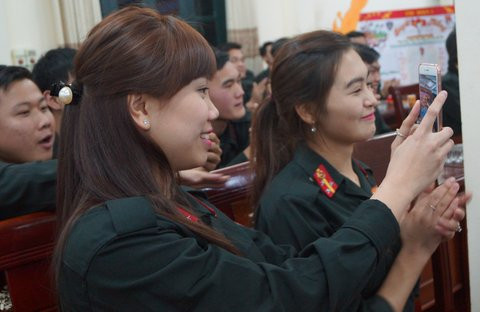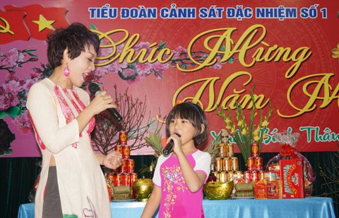 Không khí buổi gặp mặt diễn ra sôi nổi, hào hứng với các tiết mục văn nghệ của Đoàn Nghệ thuật Bộ Tư lệnh CSCĐ, đặc biệt là sự xuất hiện của ca sĩ Thái Thùy Linh cùng bạn diễn chính là cô con gái Vũ Thái An 7 tuổi. Trong dịp này, đoàn đại biểu T.Ư Đoàn và Đoàn Thanh niên Bộ Công an đã gửi tới cán bộ, chiến sĩ cụm doanh trại của Bộ Tư lệnh CSCĐ ở phường Phúc Diễn nhiều phần quà Tết ấm áp.