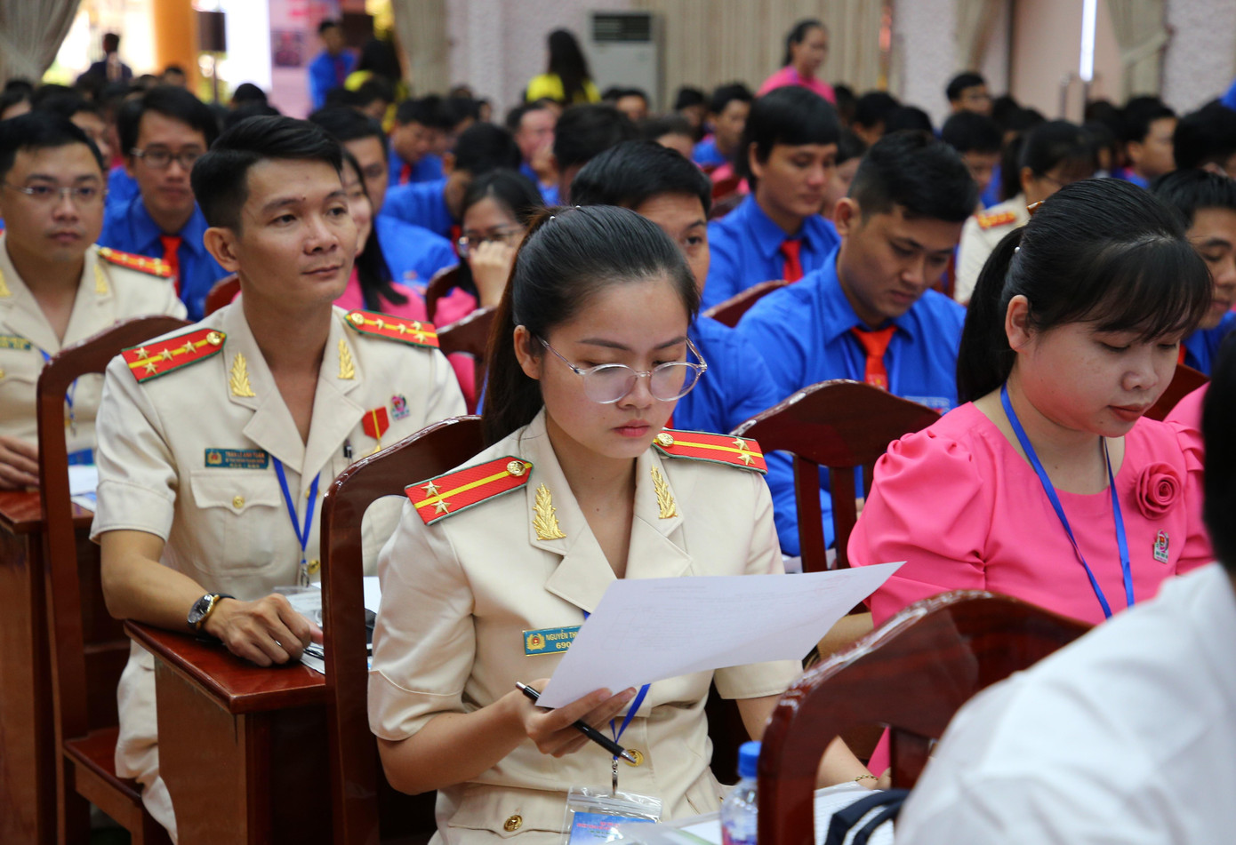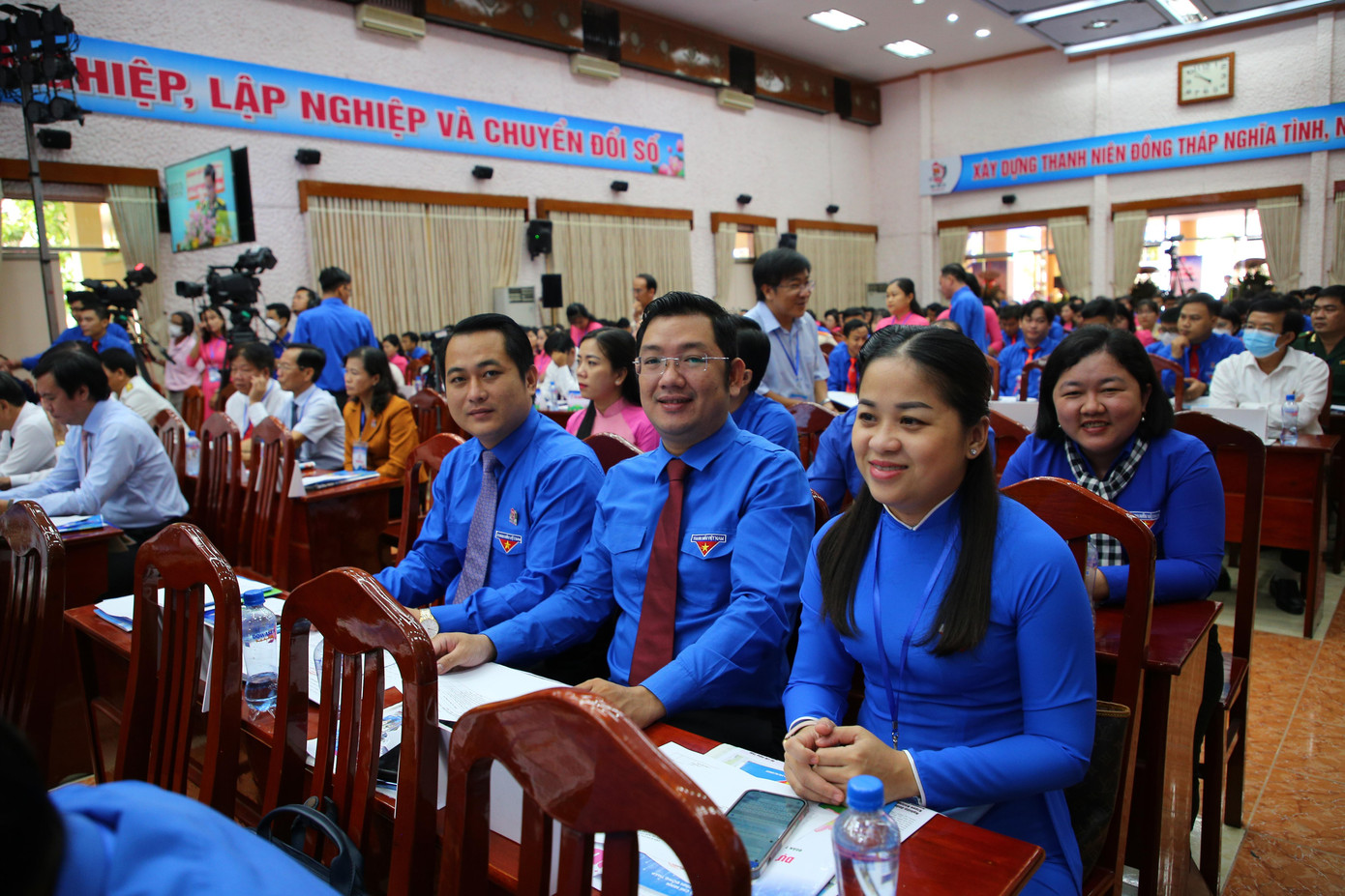 Chủ tịch UBND tỉnh Đồng Tháp Phạm Thiện Nghĩa (giữa) cùng Bí thư Trung ương Đoàn Nguyễn Phạm Duy Trang, Bí thư Trung ương Đoàn Nguyễn Tường Lâm tham dự Đại hội.