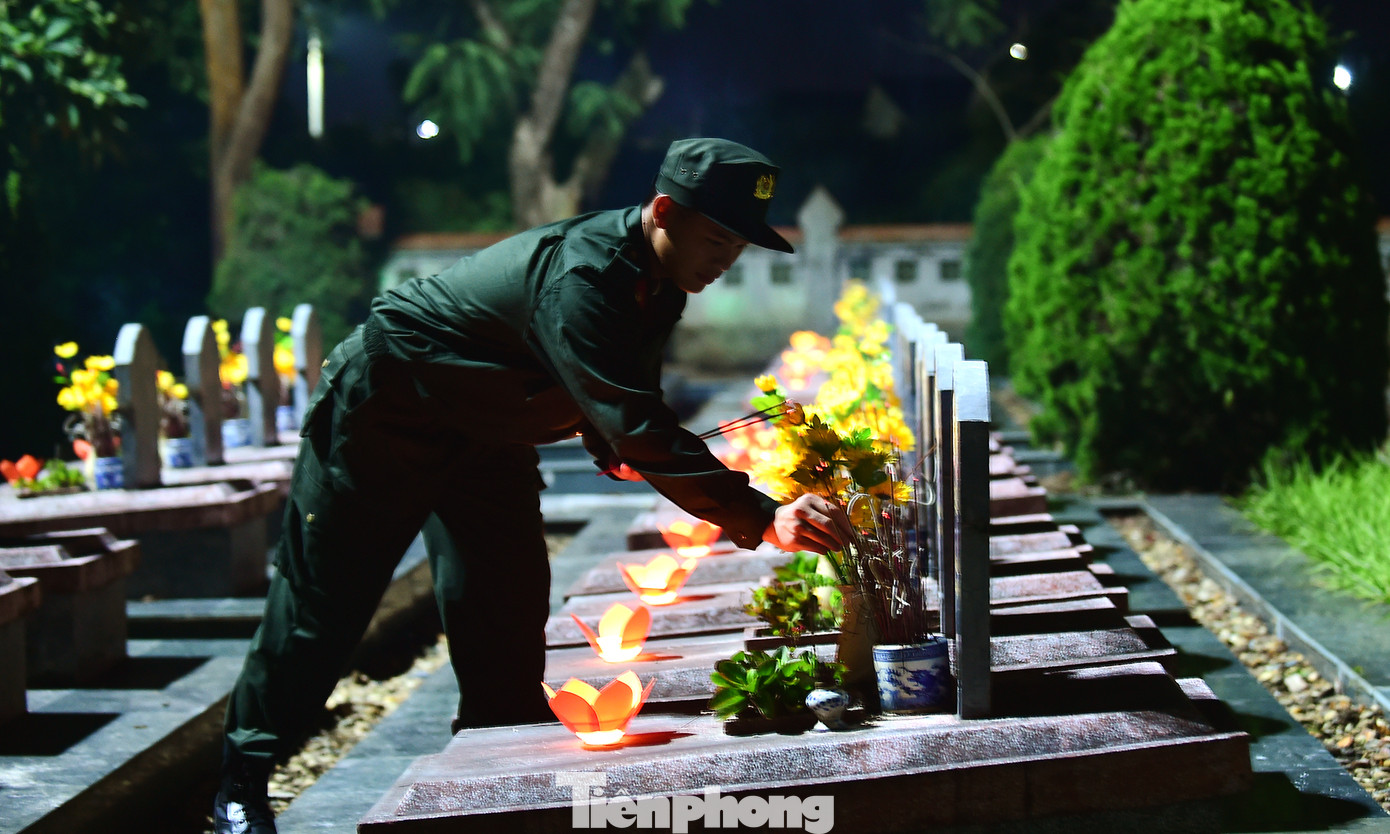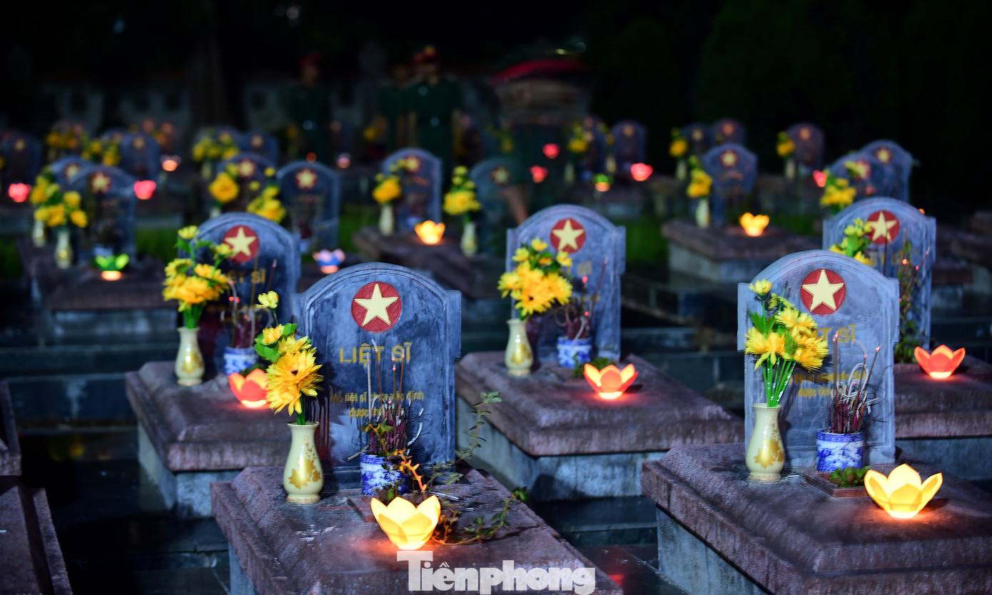 | Những ánh nến được thắp trên các phần mộ tại Nghĩa trang liệt sĩ Độc Lập. Ảnh: Xuân Tùng |