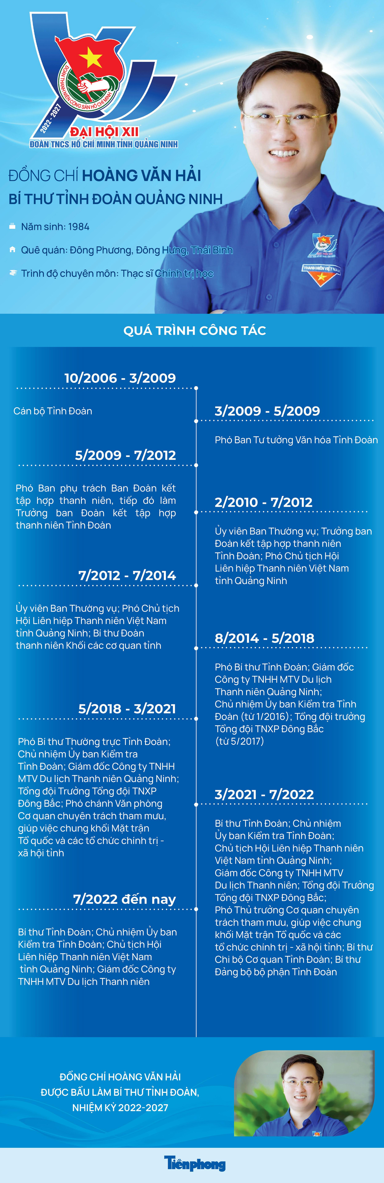 TPO - Anh Hoàng Văn Hải - Bí thư Tỉnh Đoàn Quảng Ninh khóa XI, nhiệm kỳ 2017 - 2022, được bầu làm Bí thư Tỉnh Đoàn khóa XII, nhiệm kỳ 2022 – 2027.