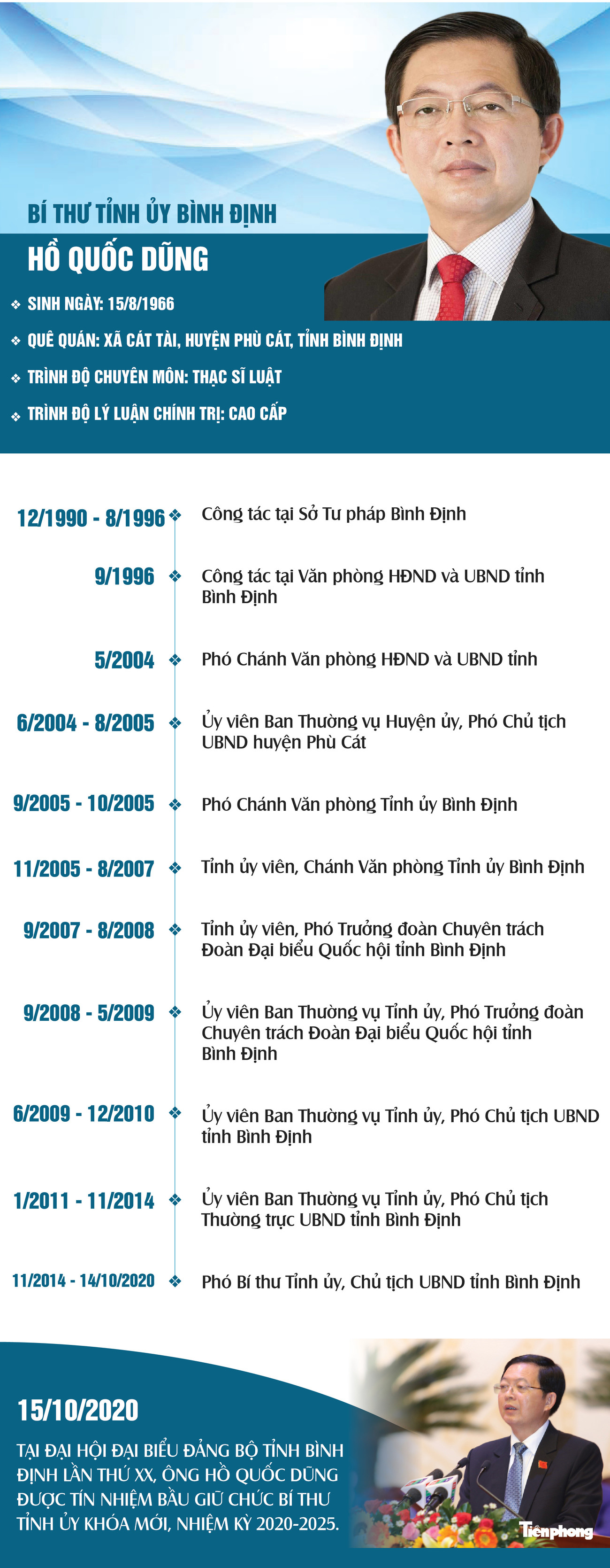 TPO - Tại Đại hội đại biểu Đảng bộ tỉnh Bình Định lần thứ XX, ông Hồ Quốc Dũng được tín nhiệm bầu giữ chức Bí thư Tỉnh ủy Khóa mới, nhiệm kỳ 2020-2025.