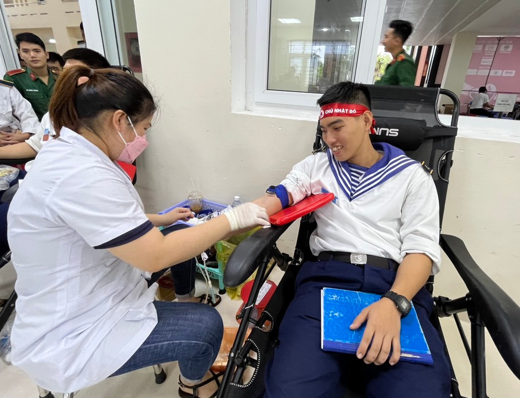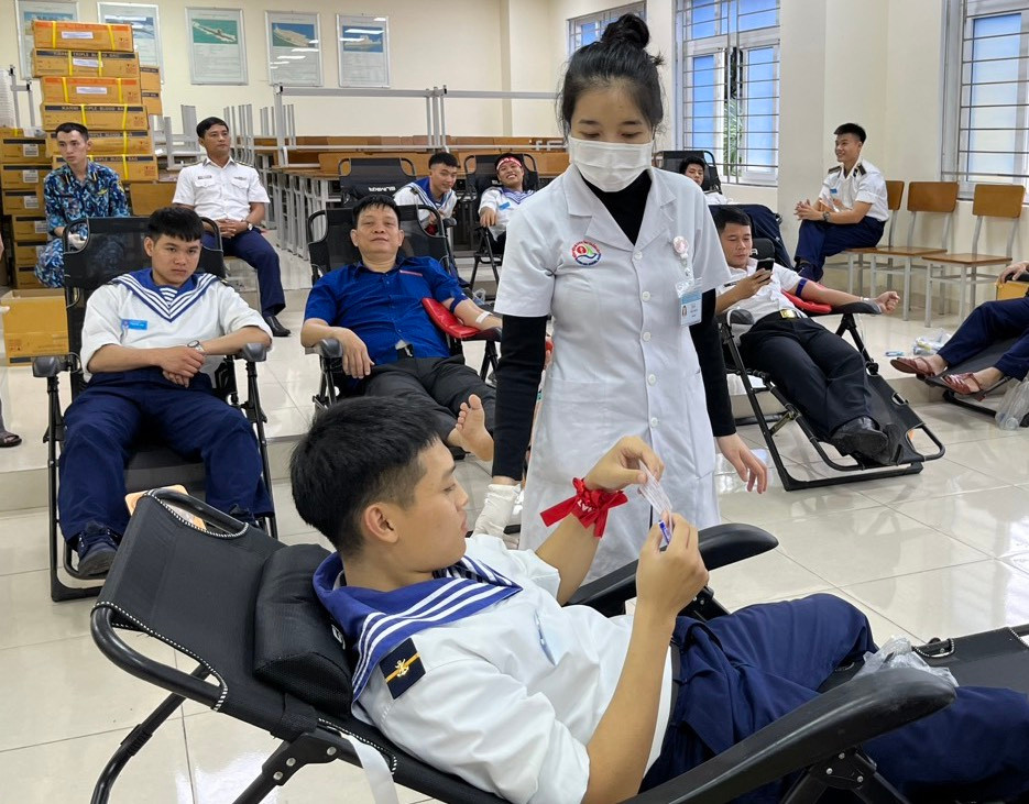 Dưới đây là hình ảnh các cán bộ, chiến sĩ, học viên của Học viện Hải quân tham gia hiến máu tại chương trình Chủ nhật Đỏ: