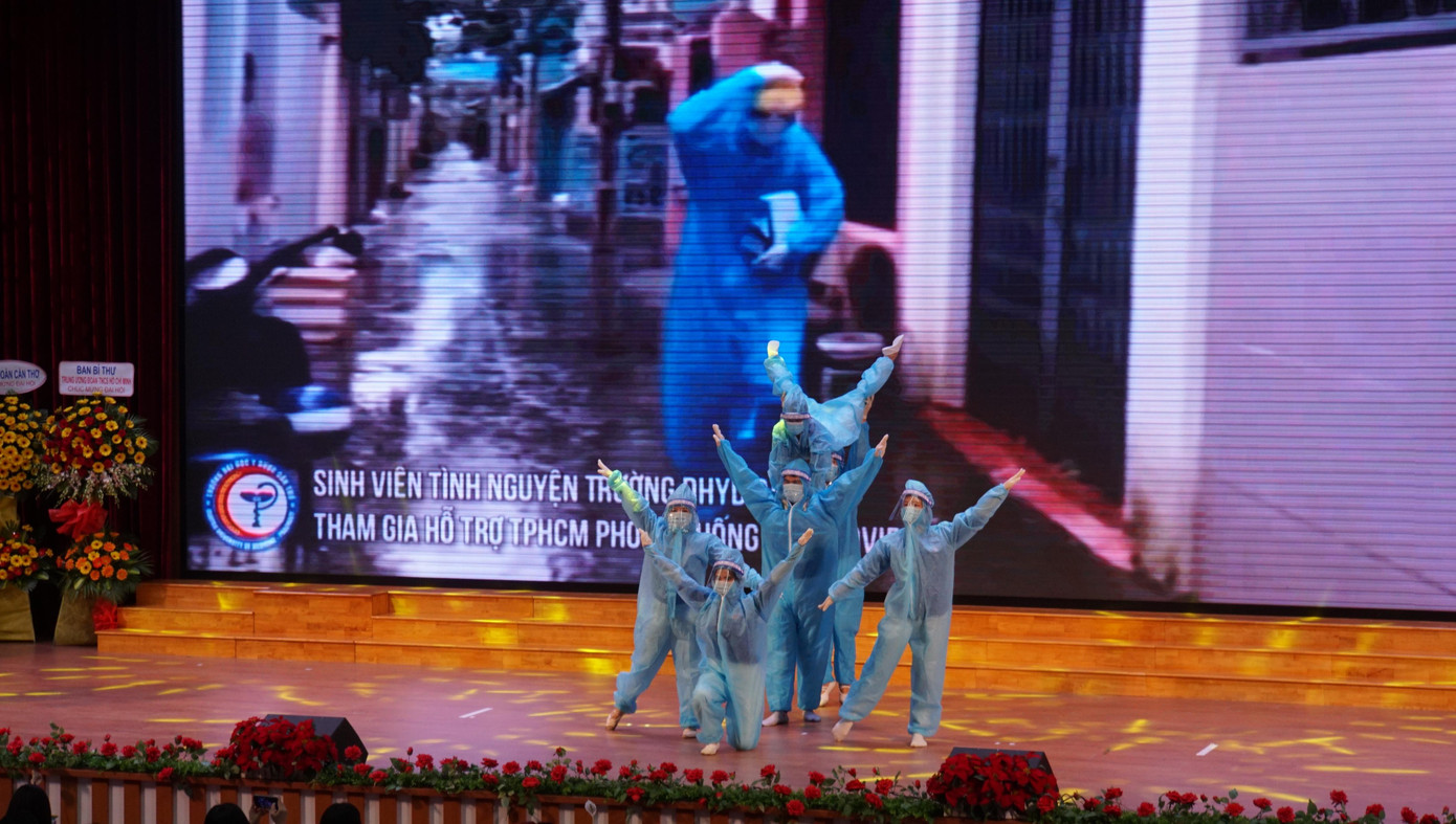 Trong bối cảnh thích ứng với đại dịch COVID-19, Đoàn trường tích cực triển khai các hoạt động tuyên truyền về tình hình dịch COVID-19 với hơn 5.755 lượt tình nguyện hỗ trợ tại bệnh viện; triển khai sáng kiến “Ứng dụng công nghệ trong việc sản xuất máy cung cấp dung dịch vệ sinh tay tự động trong đợt phòng chống dịch COVID-19” và “Ứng dụng công nghệ sản xuất máy đo nhiệt độ từ xa trong đợt phòng chống dịch COVID-19”; tham gia biên soạn, biên tập quyển “Sổ tay sức khỏe dành cho bệnh nhân COVID-19 điều trị tại bệnh viện dã chiến”.