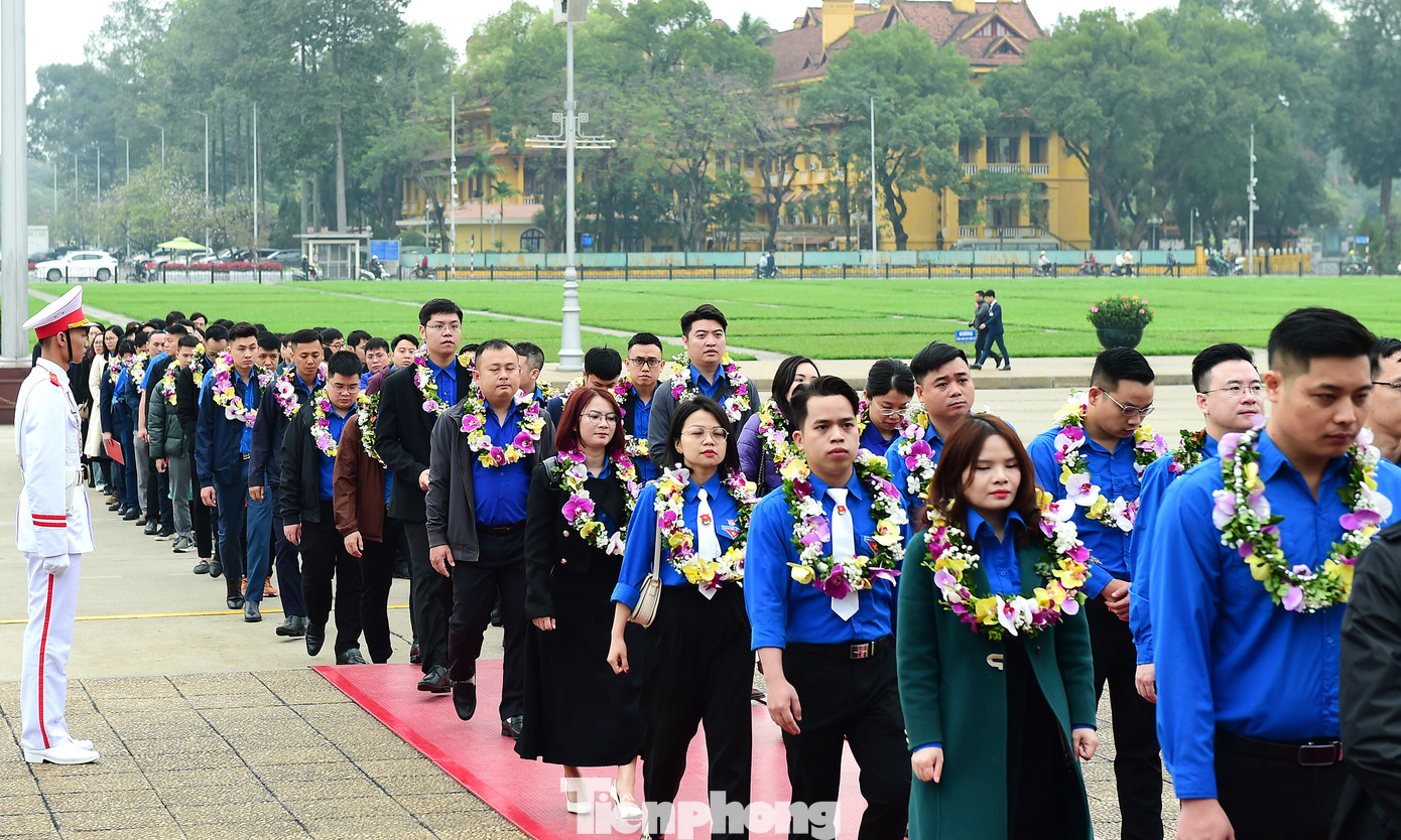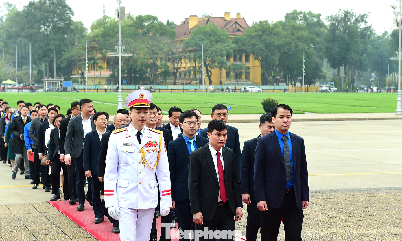 | Các đại biểu vào Lăng viếng Chủ tịch Hồ Chí Minh. Ảnh: Xuân Tùng |