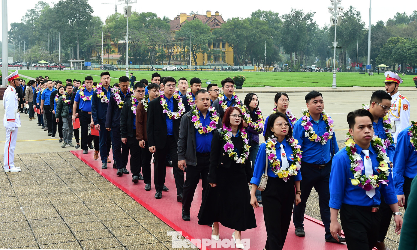 Ngay từ sáng sớm trong thời tiết tạnh ráo, các đại biểu và đoàn viên thanh niên ngành Giao thông đã tề tựu tại Quảng trường Ba Đình (Hà Nội) tham dự hoạt động ý nghĩa: báo công dâng Bác và kết nạp đảng viên, tuyên dương đảng viên trẻ tiêu biểu.