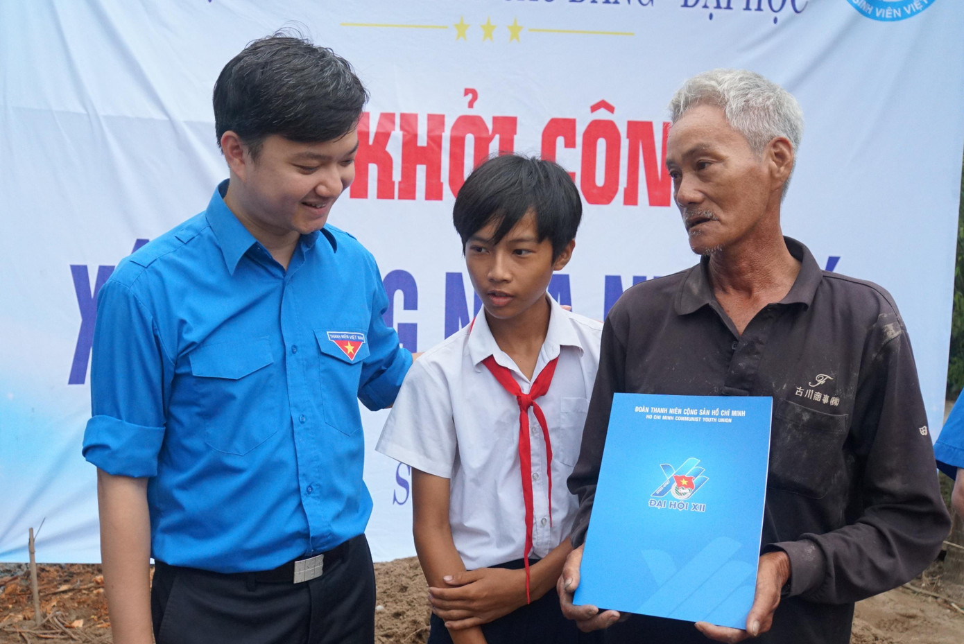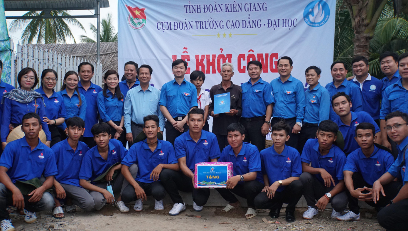 | Dự khởi công nhà nhân ái cho học sinh khó khăn về nhà ở do trường Cao đẳng Nghề Kiên Giang hỗ trợ và sinh viên trường cùng làm, anh Nguyễn Minh Triết cho biết, những công trình thiết thực như thế này vô cùng ý nghĩa và cần tập trung đầu tư cho các em có điều kiện an tâm học tập, khắc phục khó khăn của gia đình. Đồng thời, trong quá trình thi công, đề nghị đảm bảo an toàn, chất lượng căn nhà và đảm bảo sức khỏe cho chiến sĩ. Ngoài ra, Bí thư Trung ương Đoàn chúc các chiến sĩ tình nguyện có mùa hè xanh nhiều kỉ niệm và quan trọng nhất là để lại tình cảm, dấu ấn đẹp đối với gia đình, người dân địa phương. - Ảnh: Hòa Hội |