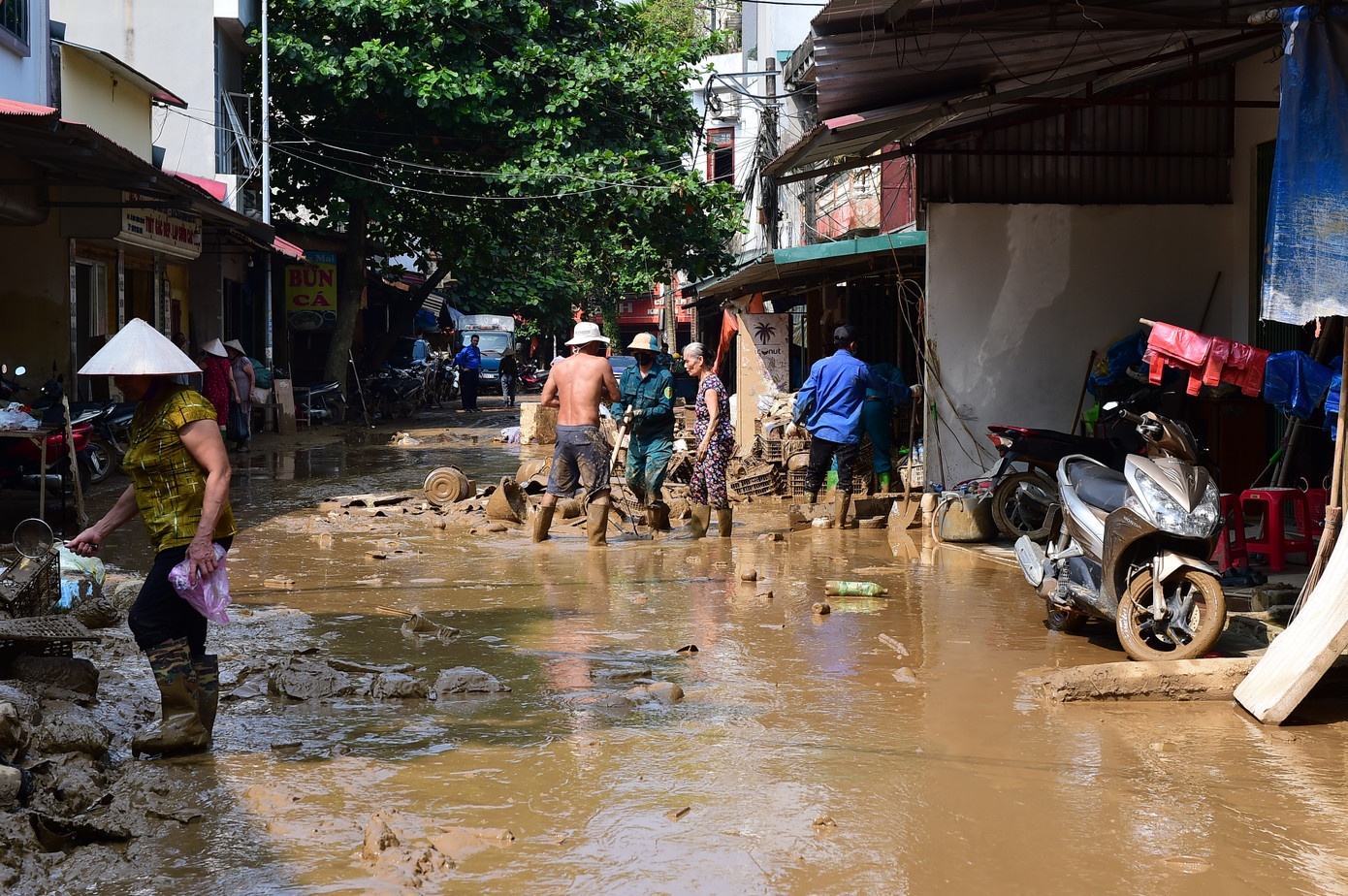 Tại đây có hàng chục đoàn viên thanh niên đang tham gia công tác khắc phục hậu quả, dọn dẹp vệ sinh môi trường trong nhiều ngày qua, ngay khi nước rút. Lũ rút để lại bùn và rác ngập ngụa trên nhiều tuyến đường, ngõ phố… ảnh hưởng đến sức khỏe của người dân, gây ách tắc giao thông, mất vệ sinh môi trường, mất mỹ quan đô thị.